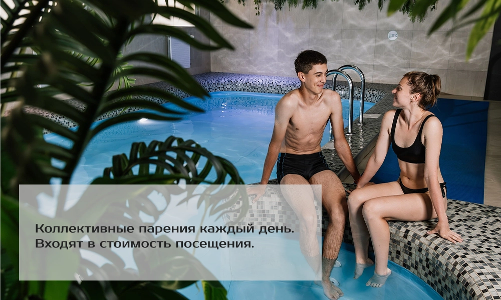 Для вас - большой уличный подогреваемый бассейн. Бани и сауны, в которых проводят ритуалы коллективных парений. Гидромассажная зона с огромным 3D экраном. Детский подогреваемый бассейн. Пляжная зона с шезлогами. Кафе с разнообразными блюдами, напитками и многое - многое другое.