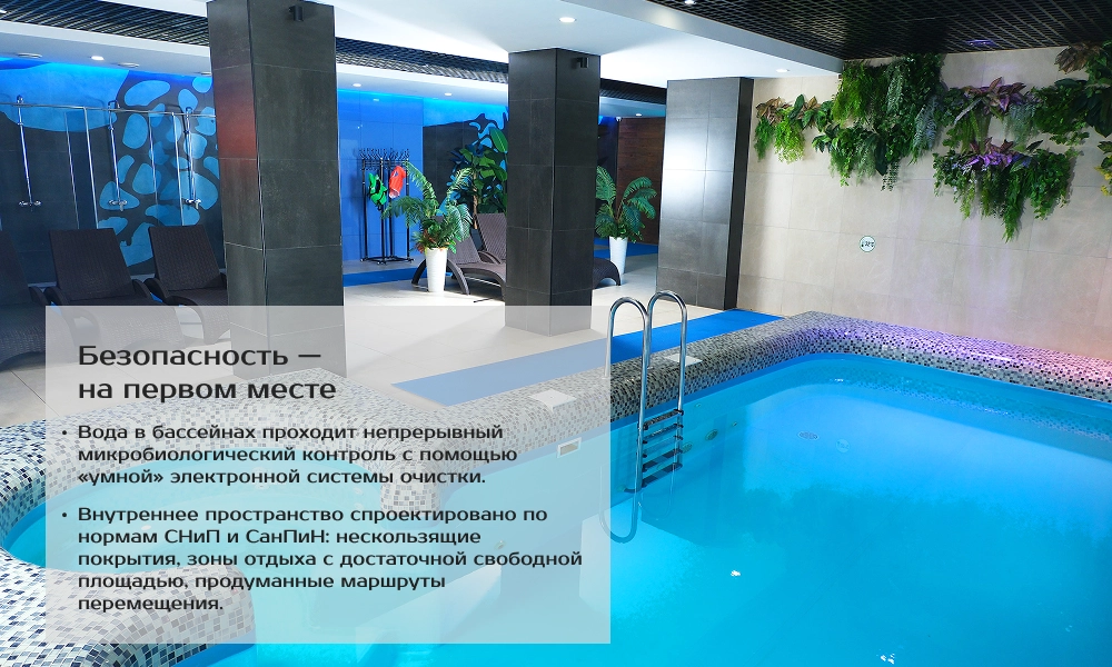 - Тёплый детский бассейн внутри комплекса — безопасно даже для самых маленьких